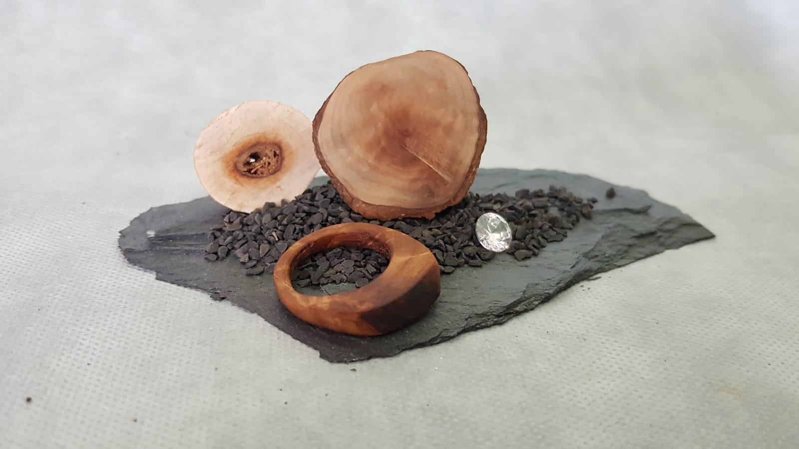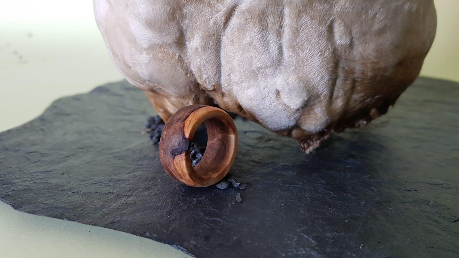 Aus Baumperlen gefertigte Ringe. Selbst gesammelt und in Handarbeit hergestellt.